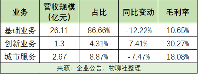 从表现来看,基础业务营收占比近87%,确实是最主要的收入来源;创新业务则是唯一一个正向增长的,同时也是毛利率水平最高的业务,但该部分的规模营收规模近1.3亿元,